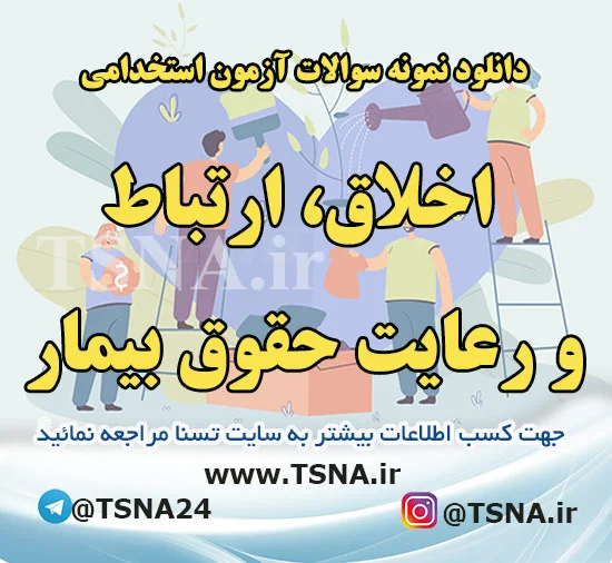 1- یک فایل PDF حاوی 11 سوال استخدامی اخلاق ، ارتباط و رعایت حقوق بیمار با پاسخنامه کلیدی