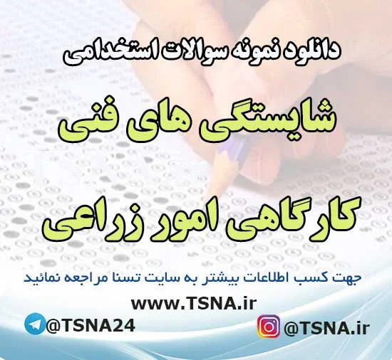 دانلود سوالات استخدامی شایستگی های فنی کارگاهی امور زراعی