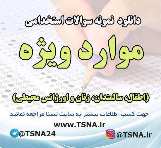 دانلود نمونه سوالات استخدامی موارد ویژه (اطفال، سالمندان، زنان و اورژانس محیطی) با پاسخنامه تشریحی