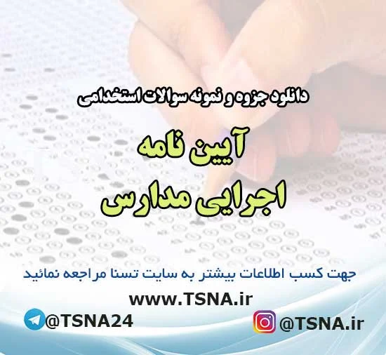 جهت دانلود رایگان بخشی از سوالات استخدامی آیین نامه اجرایی مدارس [اینجا کلیک کنید]