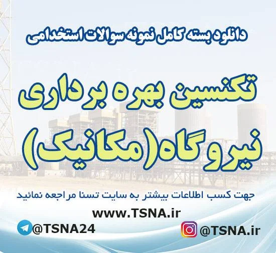 دانلود بسته کامل نمونه سوالات استخدامی تکنسین بهره برداری نیروگاه (مکانیک)