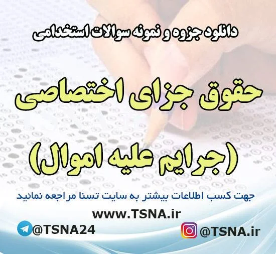 1- تعداد یک فایل PDF حاوی 76 سوال آزمون استخدامی درس حقوق جزای اختصاصی (جرایم علیه اموال) با پاسخنامه کلیدی و تشریحی