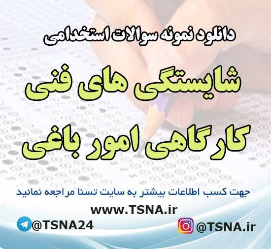 دانلود سوالات استخدامی شایستگی های فنی کارگاهی امور باغی