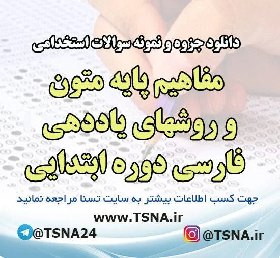 دانلود جزوه و نمونه سوالات استخدامی درس مفاهیم پایه متون و روشهای یاددهی فارسی دوره ابتدایی