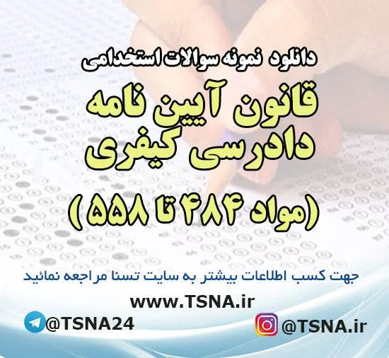 1- تعداد 48 سوال آزمون های استخدامی درس قانون آیین نامه دادرسی کیفری (مواد ۴۸۴ تا ۵۵۸) در یک فایل PDF با پاسخنامه کلیدی