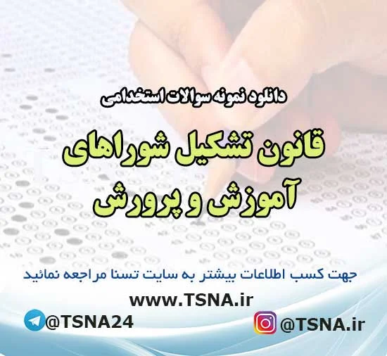 جهت دانلود رایگان بخشی از سوالات استخدامی قانون تشکیل شوراهای آموزش و پرورش [اینجا کلیک کنید]