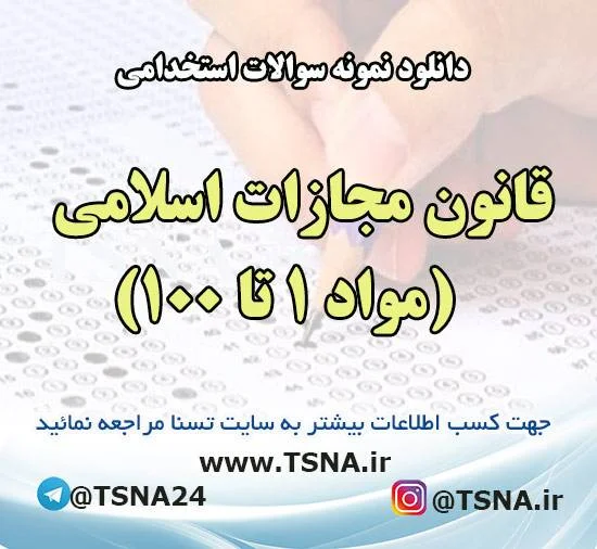 1- تعداد 100 سوال آزمون های استخدامی درس قانون مجازات اسلامی (مواد 1 تا 100) در دو فایل PDF با پاسخنامه کلیدی